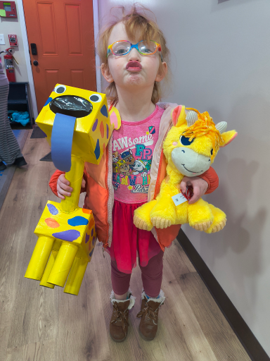 - Kaari poses for a picture with her Valentine’s Day box created by Jackson Middle School seventh-grader Orion Evans for Olivia and Friends Childhood and Development Center.