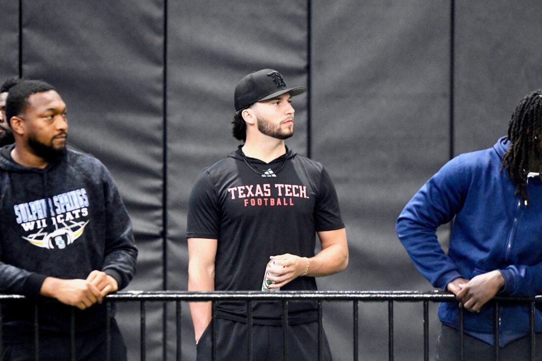 Texas Tech quarterback Brendan Sorsby watches the school's NFL football pro day in Lubbock, Texas. (AP Photo)