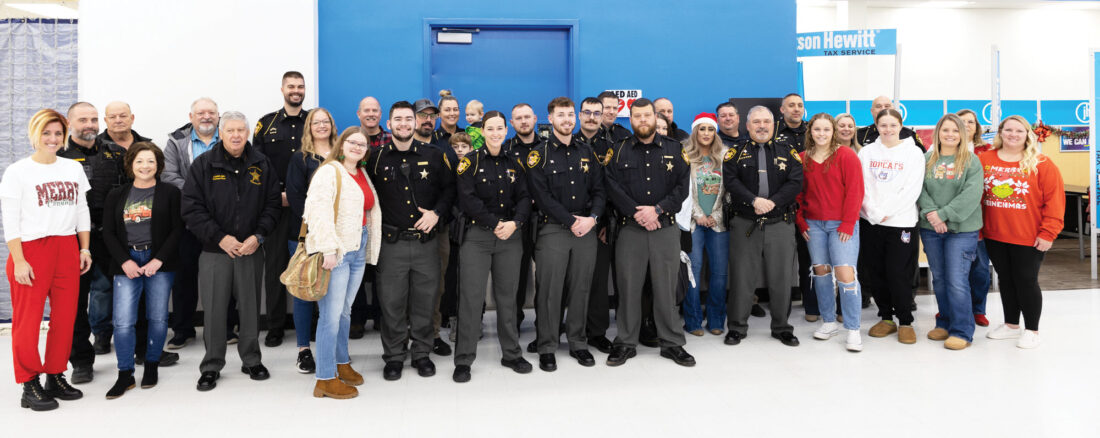 (Photo Provided) Members of the Washington County Sheriff’s Office pose with children they helped shop during a Shop With A Cop event at the Marietta Walmart Saturday. Approximately 21 children got to spend $300 on toys as part of the event.