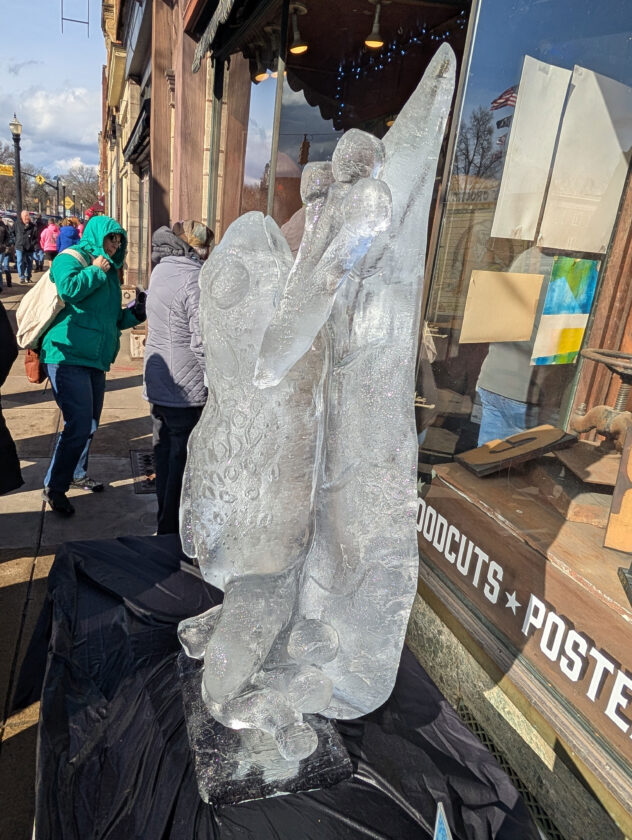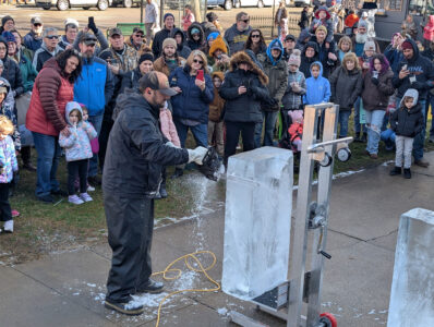 People were drawn downtown Saturday for the 10th annual Glenwood Community Marietta Ice Festival, featuring 21 ice sculptures at various businesses. Temperatures weren’t much above freezing, but the thick cloud cover was penetrated frequently by bright rays of sunshine that made the otherwise clear ice fracture inside, said Tyson Whistler, the man responsible for all the sculptures.