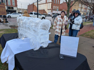 Photo by Evan Bevins The Marietta-Washington County Convention and Visitors Bureau commissioned this ice sculpture commemorating local participation in this year’s celebration of the 250th anniversary of the signing of the Declaration of Independence.