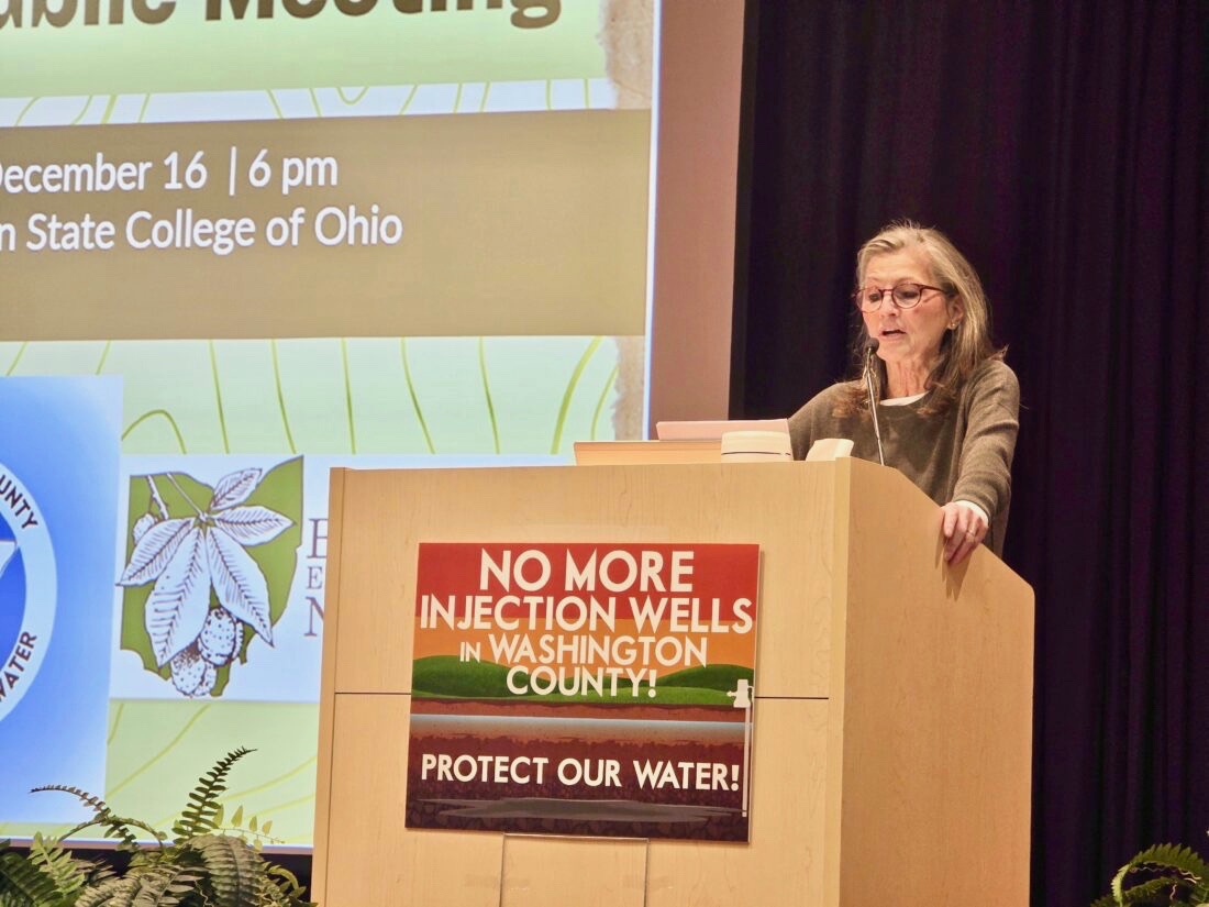 - (File Photo) Dee Wells Arnold welcomed the crowd to the Injection Well Public Meeting at Washington State College of Ohio in December.