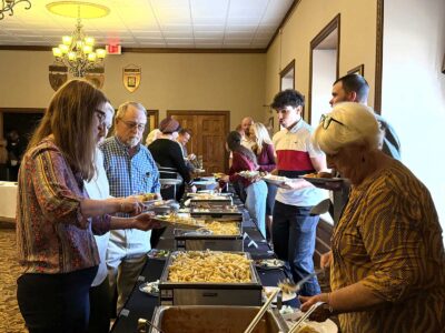 - Marietta City Schools staff and students fill their plates for dinner at the Lafayette Hotel during the Academic Excellence Awards banquet Thursday. (Photo by Amber Phipps)